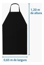 Avental de PVC com forro Maicol, 1,15 x 0,65 cm, espessura 0,30 mm, na cor preta. Resistente, confortável e ideal para proteção contra umidade e respingos. Produto com CA, indicado para uso profissional.
